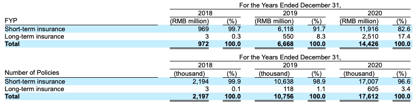 从招股书的数据来看,水滴保的单个用户首年保费从2018年的590.1元提高到2020年的1143.2元,单张保单的首年保费从2018年的442.6元提高到2020年的819.1元。这标明,水滴保逐步探索出由短险用户向长险用户转化的有用途径。