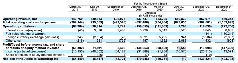 从水滴发表的各个季度财务数据来看,2020年的第二季度,水滴的运营赢利现已转正,净亏本只要1.9万元,根本达到了盈亏平衡点。随后水滴又进一步加大了出售及营销费用的投入,这说明现阶段的水滴是把增加的优先级放在盈余之前的。