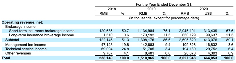 水滴保是从2019年开始发力长时间险网销事务,长时间险生意事务佣钱收入从2018年的151万元增至2019年的1.73亿元,到2020年增至6.5亿元,占公司营收的份额从0.6%提高到21.5%。