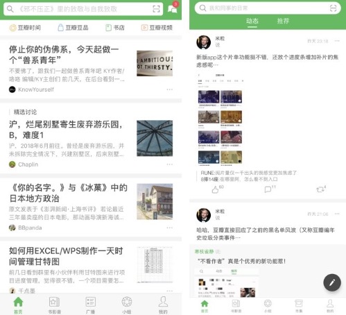 一起,之前散落在 App 各个方位的商业变现功用,例如贩卖周边的「豆瓣豆品」和音频常识付费产品「豆瓣时刻」则在新版中被一致放在了底部导航栏上。