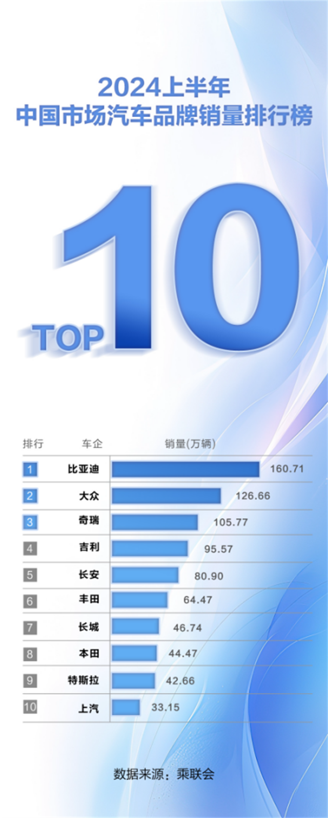 作为新能源轿车世界冠军,比亚迪销量体现尤为超卓。据乘联会数据,比亚迪2024上半年累计出售160.71万辆,位列我国商场轿车品牌销量排行榜第一,连任国内车企销量冠军。